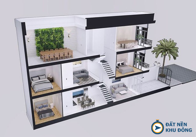 Với kiến trúc 1 trệt, 2 lầu của căn nhà 68m2 – 103m2, người mua có thể sở hữu lên tới 153m2 – 198m2 chưa kể sân vườn 30m2. Tính ra mức giá tính trên diện tích sàn chỉ 21triệu/m2. Một mức giá rất cạnh tranh, chỉ ngang bằng, thậm chí rẻ hơn một số dự án căn hộ.