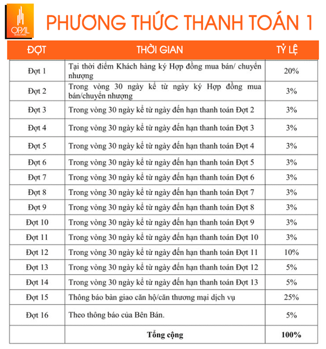Chính sách thanh toán dự kiến: chỉ cần thanh toán 200 triệu đến quý 2/2020 mới thanh toán tiếp: